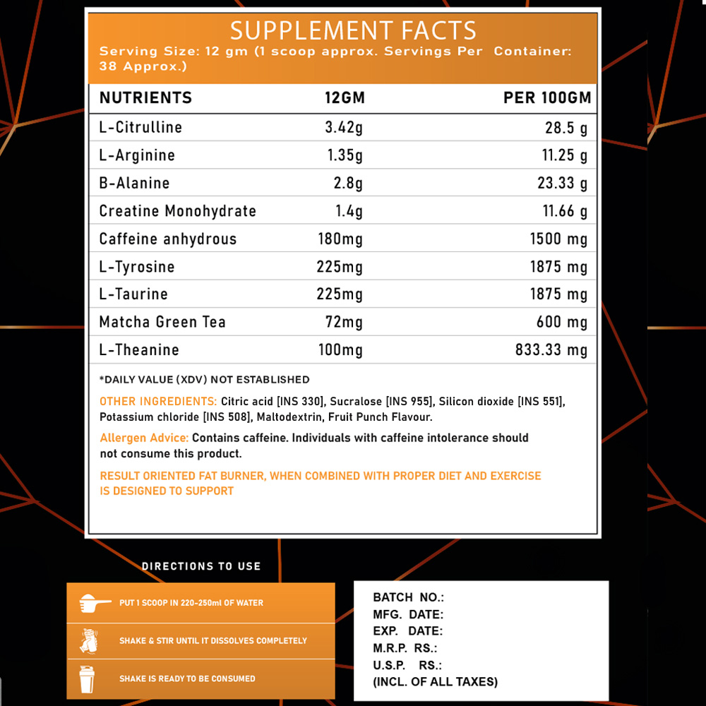 It will suppress your appetite and provide you with a higher energy level in order to keep the adrenaline levels up. It will also boost your metabolism and burn calories for you. For permanent weight loss, it is recommended to use a fat burner which helps to reduce fat faster.Ignite The Fat Burner Pre-Workout is a sophisticated and comprehensive pre-workout fat burner supplement.