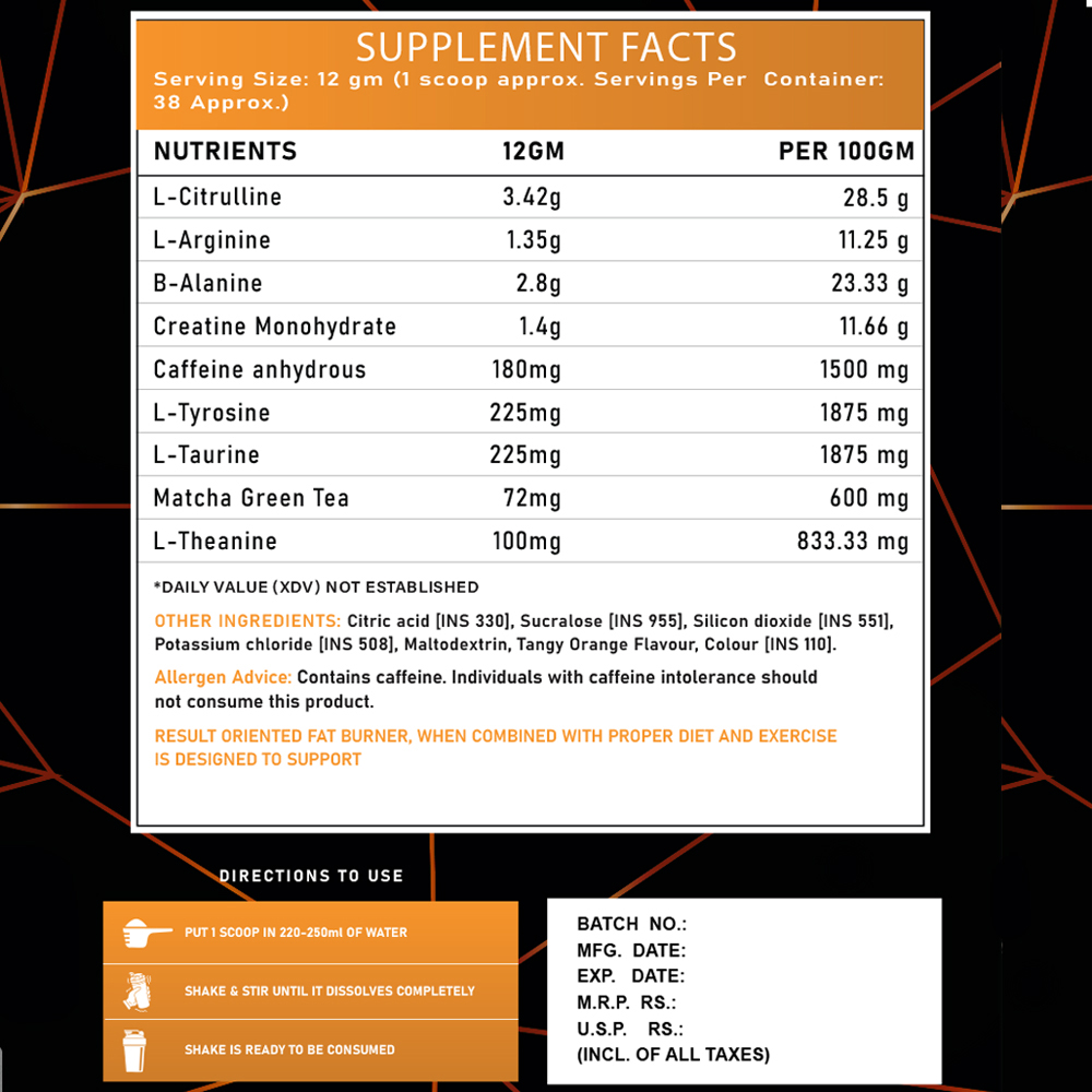It will suppress your appetite and provide you with a higher energy level in order to keep the adrenaline levels up. It will also boost your metabolism and burn calories for you. For permanent weight loss, it is recommended to use a fat burner which helps to reduce fat faster.Ignite The Fat Burner Pre-Workout is a sophisticated and comprehensive pre-workout fat burner supplement.